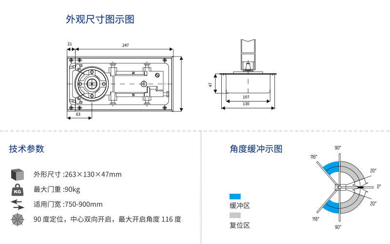 90 度定位,中心雙向開啟,最大開啟角度 116 度">